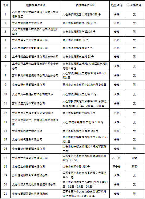 2023年太仓市游泳场所第三轮水质检测结果公示