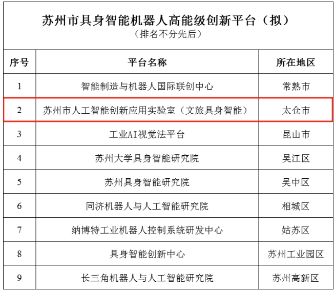 二、苏州市具身智能机器人高能级创新平台入围名单