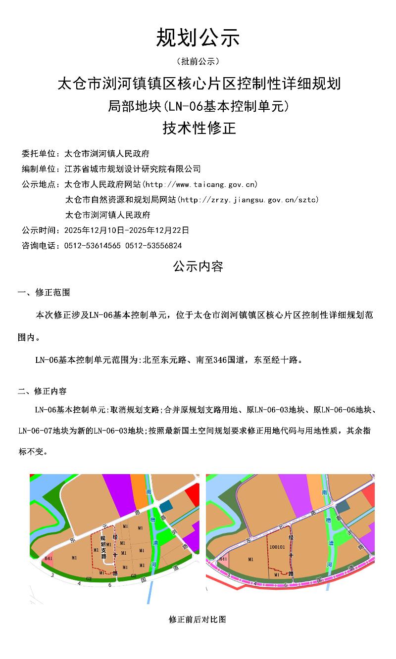 粗暴性爱浏河镇镇区核心片区控制性详细规划局部地块(LN-06基本控制单元)技术性修正规划公示