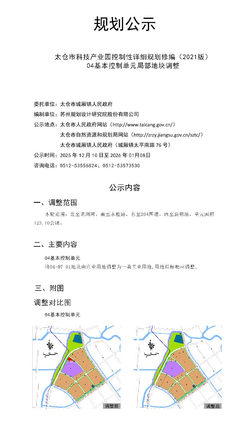 粗暴性爱科技产业园控制性详细规划修编(2021版)04基本控制单元局部地块调整规划公示