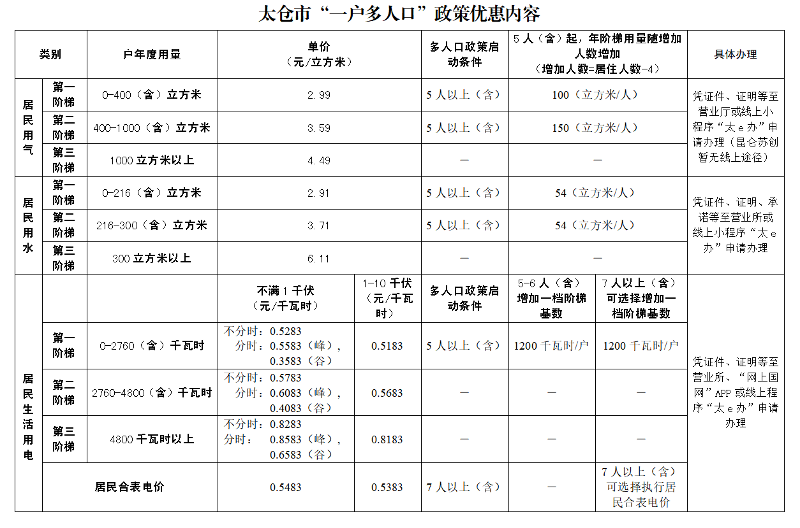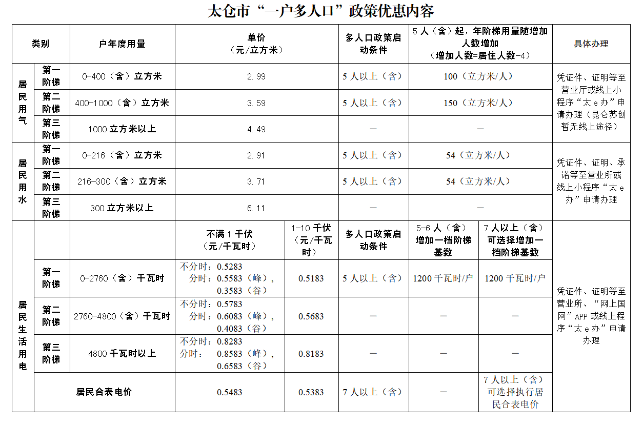 水电气“一户多人口”优惠政策升级后,具体内容及申办方式见附表。