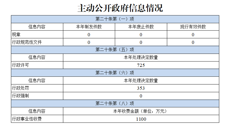 根据《条例》要求,在太仓市人民政府门户网站及时主动公开各类公示公告、部门工作动态、重要会议活动、重大决策事项、重要政策条款等事项。2024年全年公开政府信息142条,其中区镇动态103条、政策文件39条。本年度未涉及规章和行政规范性文件的制发或废止工作。全年批准办结行政许可事项725件,其中市政设施建设类审批54件,户外广告设施设置的审批309件,城镇污水排入排水管网许可158件,临时性建筑物搭建、堆放物料、占道施工审批43件,临时占用城市绿化用地审批1件,公共场所卫生许可133件,实行不定时工作制和综合计算工时工作制审批27件。处理行政处罚案件353起、行政强制0起,主要涉及农业农村、水利水务、住建和城市管理;行政事业性收费1100万元。