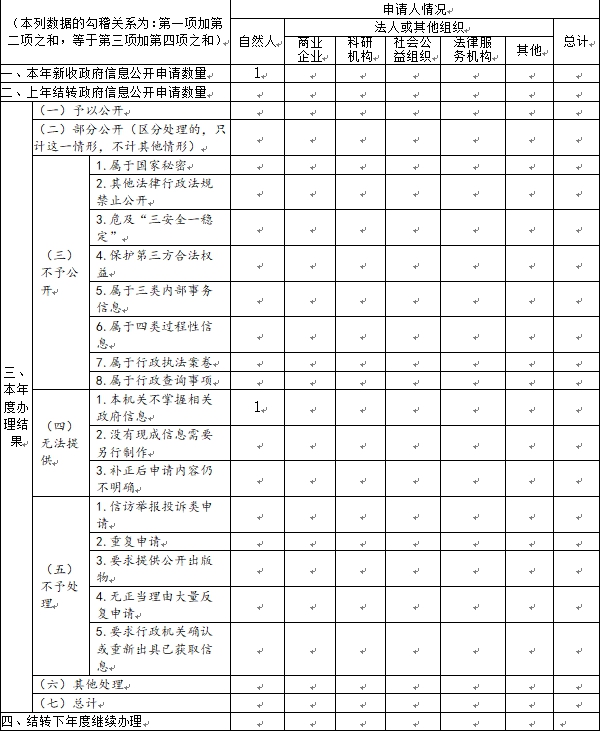 三、收到和处理政府信息公开申请情况