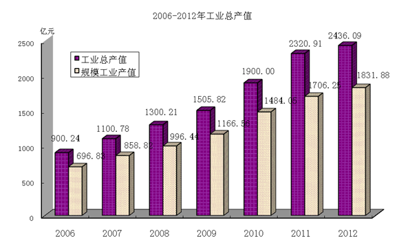 全年完成工业总产值2436.09亿元,比上年增长5.0%。其中,规模以上工业总产值1831.88亿元,增长5.8%。年末全市规模以上工业企业1178家,年产值突破亿元企业298家,其中超20亿元企业15家、超50亿元企业3家。