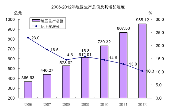 初步核算,全年实现地区生产总值955.12亿元,按可比价格计算,比上年增长10.3%。其中,第一产业增加值33.61亿元,增长4.2%;第二产业增加值520.36亿元,增长8.1%;第三产业增加值401.15亿元,增长14.0%。按常住人口计算,人均地区生产总值134439元,增长10.7%。第一产业增加值占地区生产总值的比重为3.5%,第二产业增加值比重为54.5%,第三产业增加值比重为42.0%。