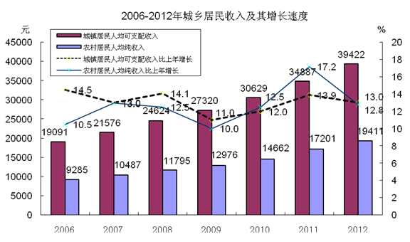 全年城镇居民人均可支配收入39422元,农村居民人均纯收入19411元,分别比上年增长13.0%和12.8%。城镇居民人均生活消费支出27129元,农村居民人均生活消费支出13091元,分别增长17.3%和18.0%。城乡居民食品支出占生活费支出的比重(恩格尔系数)为33.8%。