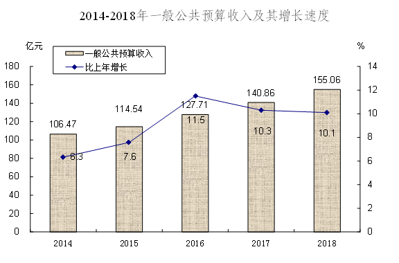 2018年,太仓市共实现一般公共预算收入155.06亿元,比上年增长10.1%;其中税收收入139.52亿元,增长14.3%;税收占比为90.0%。全年一般公共预算支出132.59亿元,比上年增长4.8%。