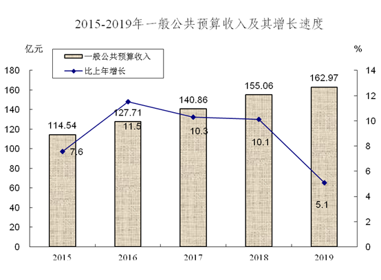 2019年,太仓市共实现一般公共预算收入162.97亿元,比上年增长5.1%;其中税收收入140.51亿元,增长0.7%;税收占比为86.2%。全年一般公共预算支出143.22亿元,比上年增长8.0%。