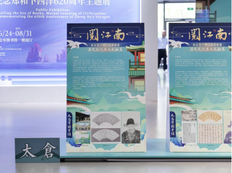7月15日—8月17日,展览在太仓市图书馆展出,共有30多张展板,陈列了长三角六地30余名历史文化名人,展板内容涵盖地方历史文化名人的图像,及其手稿、书信、古籍、影印本、地方志、传记、书画作品(复制件)等。同时在太仓市图书馆二楼地方文献区域专设展览文献专架,将历史文化名人的相关著作进行展出,并同步通过微信公众号进行宣传。