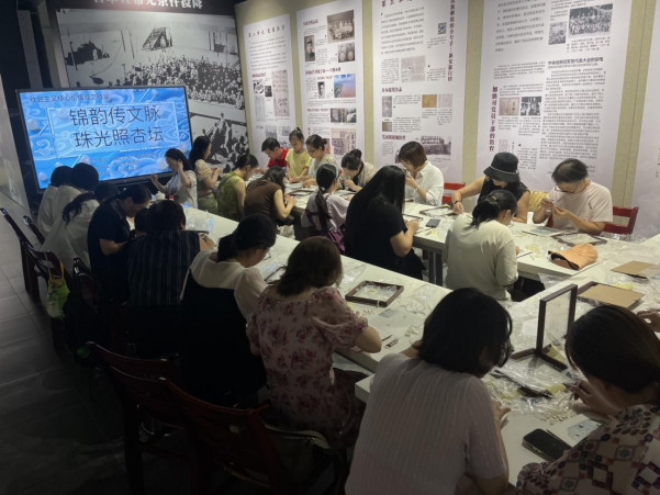 在第41个教师节即将来临之际,为弘扬尊师重教的优良传统,9月7日,太仓市博物馆特别邀请28名在职教师齐聚博物馆三楼,开展以宋锦珍珠画制作为主题的特色活动,为教师们带来一场兼具文化韵味与教育思考的独特体验。