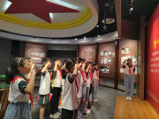 研学活动中,孩子们参观了《太仓革命历史陈列》、《江海和合扬帆太仓——郑和下西洋620周年文物展》。踏入展厅的那一刻,同学们的目光便被一件件承载着历史记忆的展品牢牢吸引。他们自觉围拢在讲解员身边,屏息聆听——从家乡人民在抗战岁月里的英勇抗争,到郑和率领船队扬帆远航、联通世界的壮举,每一段故事都让大家沉浸其中,仿佛穿越时空与历史对话。
